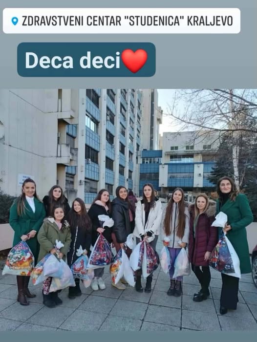 " ДЕЦА ДЕЦИ" Посета Дечјем одељењу краљевачке болнице Ако желите неком да улепшате дан - поклоните му пажњу , време , љубав . Ако желите себи да улепшате дан - поклоните некоме пажњу , време , љубав . С тим циљем , ученице наше школе са директорком школе , наставницом хемије и психологом , посетилe су Дечје одељење ЗЦ " Студеница" и поклониле дечје постељине и новогодишње пакетиће . Надамо се да смо деци на лечењу у краљевачкој болници , на овај начин улепшали предстојеће празнике уз жељу да што пре буду у кругу своје породице . Осетите лепоту даривања . СРЕЋНИ ПРАЗНИЦИ !