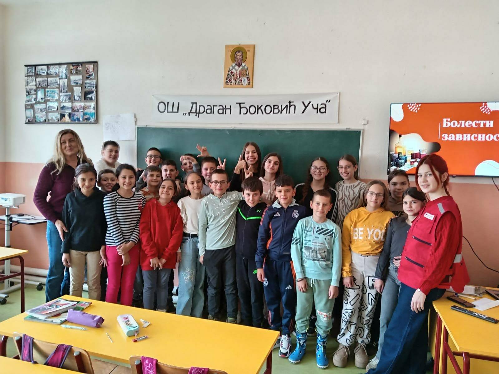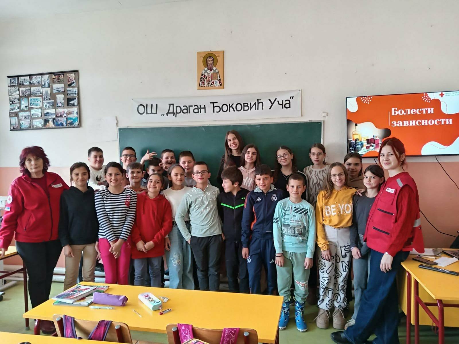 Током месеца децембра нашу школу су посетили представници Црвеног крста Краљево, при чему су одржали радионицу са ученицима 5. разреда посвећену болестима зависности. Радионицу посвећену алкохолизму, пушењу, наркоманији, зависности од савремених технологија и друштвених мрежа, одржала је сада већ бивша ученица наше школе, а иначе волонтер Црвеног крста Анастасија Павловић . Наставница биологије , Наташа Јовић