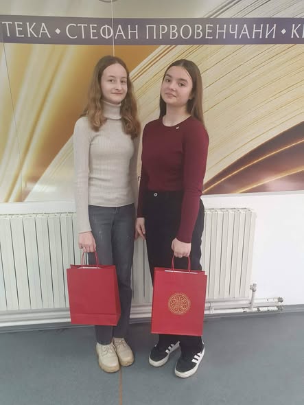 ЈЕЛЕНА ПАВЛОВИЋ И НИНА ВУЈОШЕВИЋ, УЧЕНИЦЕ 8/1, ОСВОЈИЛЕ СУ 2. МЕСТО НА ЛИТЕРАРНОМ ТАКМИЧЕЊУ О СВЕТОМ САВИ Такмичење је одржано у Народној библиотеци "Стефан Првовенчани", на Дечјем одељењу, 28.1.2026. године са почетком у 12.00 часова. Нашу школу представљали су ученици - литерарни ствараоци: 1. Ана Весовић, 5/2 2. Марко Андрић, 6/1 3. Драгутин Бајагић, 6/1 4. Анђелија Сретовић, 6/1 5. Невена Павловић, 6/1 6. Павле Пејчиновић, 6/1 7. Александар Миловановић, 7/2 8. Јелена Павловић, 8/1 9. Нина Вујошевић, 8/1 , са својим менторима Горданом Денић и Јовановић Жељком . Циљ такмичења је да основношколце са посебним даром за литерарни израз мотивише да размисле и кроз различите облике писменог изражавања искажу своју мисао о Светом Сави. Ученицима су била понуђена 2 тематска оквира: 1."Кад је Свети Сава био дете" и 2."Свети Сава јунак бајке." Упутство и смернице за писање учесницима такмичења дала је Гордана Тимотијевић, ауторка за децу. Жири у саставу: Гордана Тимотијевић, председавајућа, Ивана Хренко, уредница у Издавачкој делатности Библиотеке и Катарина Јаблановић, дипл.библиотекар саветник и проф.српског језика и књижевности вредновали су и рангирали радове. Ученице наше школе Јелена Павловић и Нина Вујошевић, по одлуци Жирија, деле друго место. Обе ученице показале су изузетну способност писменог изражавања и спремност да своје мисли обликују на најбољи могући начин. Данас, у 12.00 у Библиотеци је организована свечана додела награда најбољима, уз присуство директора школе Јелене Трнавац, психолога Милене Остраћанин и библиотекара Горана Николића. Захваљујемо се нашим ученицима и наставницима српског језика и књижевности , који су, кроз ово такмичење, дали допринос културној и јавној делатности школе, литерарном и поетском стваралаштву. Јелени и Нини честитамо на освојеним наградама . До следећег такмичења!