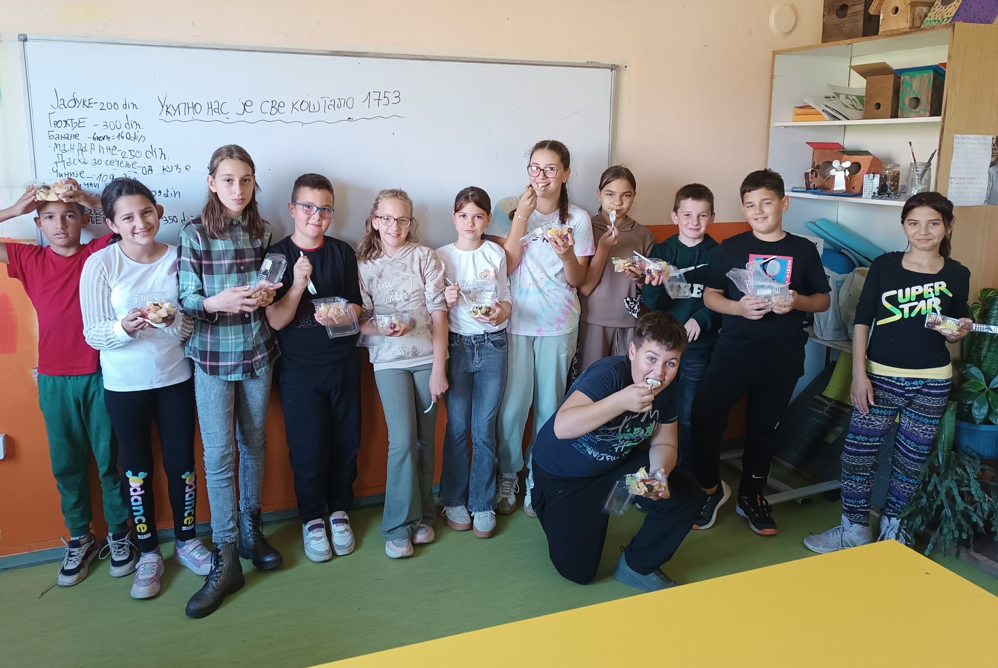 Ученици 5/1 и 5/2, обухваћени пројектом Обогаћени једносменски рад, кроз активност ,,Свет финансија 2", обележили су Дан здраве хране , 16.октобар .Ученици су направили списак и израчунали колико им је новца потребно за припрему воћне салате.Припремили су воћну салату, а затим се почастили.Предметни наставник, Јелена Танасковић